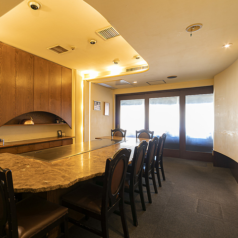 鉄板を前にしたカウンターはそのままに、扉を閉めて個室としてご利用いただける部屋をご用意。5~10名様のご予約のみ、受け付けております。ご利用の際、ご飲食代金の10%を承ります。