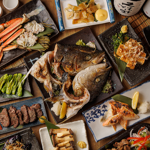 各種炉端焼きや海鮮のついたコースや肉三昧なコースまで。全コース飲み放題付き4000円からご案内。