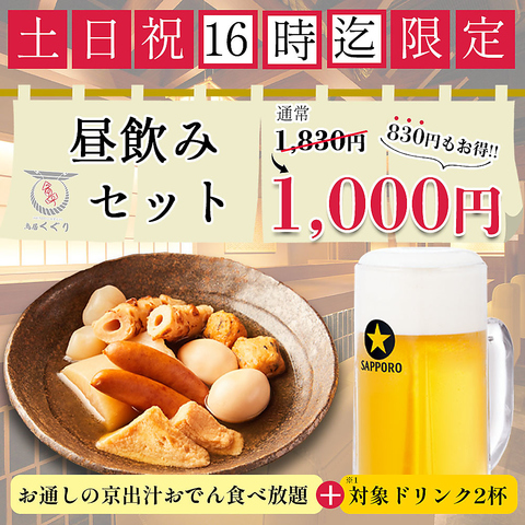 《NEW》期間限定でお得な昼飲みセットが新登場!!通常1830円がなんと1000円に!!詳細はコースページまで♪