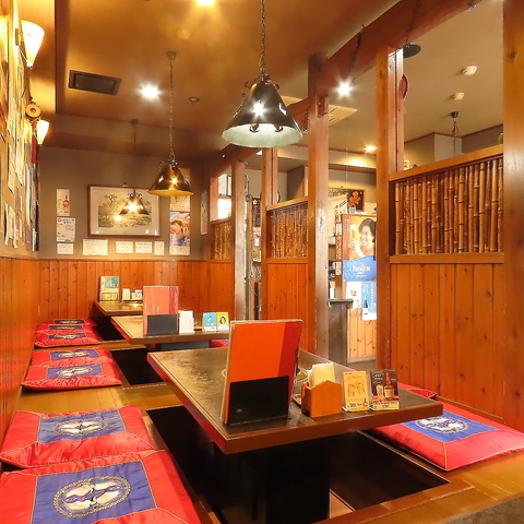 明るい照明や温かみのあるアジアンなインテリアが魅力的なお店です◎駅から徒歩10分以内の好立地で駐車場もあり、お集まりの集合や解散にも便利!お席はテーブル席、掘りごたつ、お座敷をご用意しており、様々なシチュエーションでご利用いただけ、リラックスして過ごせます☆