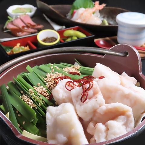 【もつ鍋コース】自家製国産和牛ローストビーフなど含む飲み放題付きコースや、季節の食材をふんだんに使用した【至福コース】など、宴会コースをご用意。
