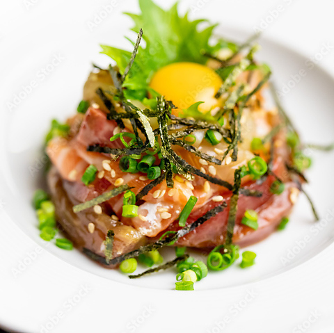 全国各地の漁港から直送された旬の鮮魚を、職人の目利きで厳選し、丁寧に盛り付けた自慢の刺身盛り合わせ。とろけるような脂の乗った魚や、歯ごたえのある身の引き締まった魚まで、五感で味わえる一皿です。見た目にも彩り豊かで、特別な日のお食事やおもてなしにもぴったり。