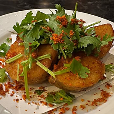 サクサク食感の中に、ホクホクのポテトの甘味が口いっぱいに広がります。おまけに、フレッシュパクチーをふんだんにトッピング。爽やかな後味がくせになります。