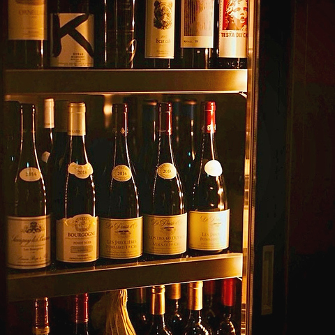 入口の大型ワインセラーが目印です。飲みやすいリーズナブルなものから高級なものまで幅広くご用意。当店自慢の焼き鳥と相性の良いワインをはじめ、日本酒など種類豊富なドリンクを厳選してご用意しております。ドリンクページに掲載のないメニューもございますので、ぜひスタッフまでお尋ねください。