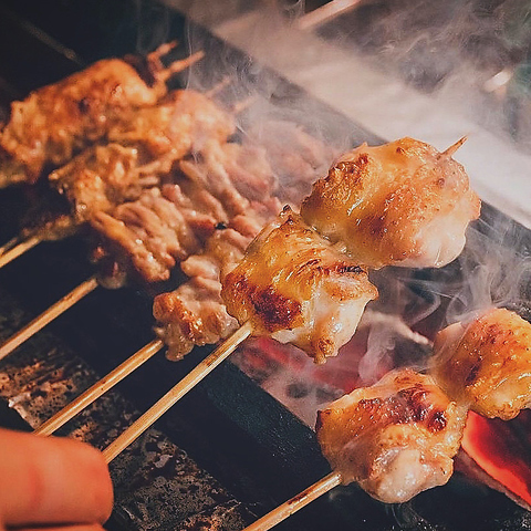 地鶏・銘柄鶏・若鶏の良いところを組み合わせ、店内で手打ちし、カウンターの目の前で炭火で焼き上げるこだわりの本格焼鳥。一本一本丁寧に焼き上げるため、一番美味しい焼きたての状態をお召し上がりいただけます。コースではその日におすすめの「本日の串焼き」としての串焼きをご提供いたします。