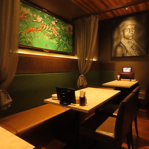 BABYFACE Planet’sのインテリアは、オーナーがインドネシアのバリ島へ直接足を運び、買い付けてきたものです。アーティストや職人による手作りの一点ものが、鮮やかな色使いと繊細な装飾で独特の雰囲気を生み出しています。バリ島の温かみと癒しを感じられる特別な空間で、日常を忘れておくつろぎください。