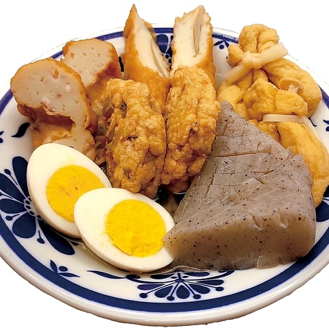 あご(飛び魚)のだしがきいたコクと香りが特徴のおでんは来んね自慢の逸品です♪「大根」や「餅巾着」といった定番メニューから「BIG焼売」といった変わり種までございます。メニューに迷われた方は盛り合わせがオススメです!
