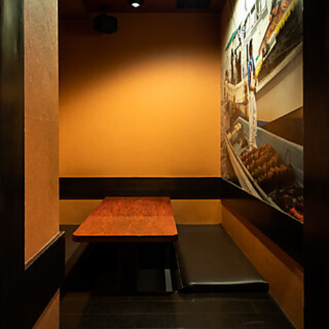 掘りごたつ式の完全個室です。3名様から6名様でご利用いただけます♪足をのばしてくつろげるので、親しい方との飲み会や会食におすすめです◎※個室チャージ料金500円を頂戴しております。