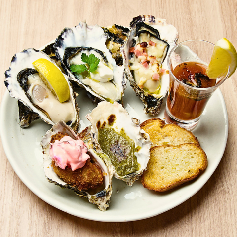 牡蠣を色々な食べ方で楽しみたい!という方には「オールスターオイスター」がおすすめ◎新鮮な「生」はもちろん、つるりと楽しめる「シューター」、香ばしい「焼き」、サクサクの「フライ」、そして濃厚な「ペースト」まで、当店自慢の牡蠣の魅力を5つのスタイルで贅沢に楽しめます♪