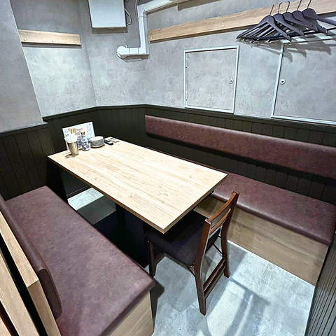 木目テーブルとソファ席でくつろげる扉付き個室です。仲間内の飲み会やご家族・ママ会、会社の打ち上げや誕生日会、デートの二次会にも◎ 落ち着いた内装で大人の集まりにもおすすめ。5~7名様でのご利用に最適です。