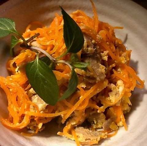 沖縄の定番料理、ゴーヤチャンプルーを、ゴーヤが苦手な方にもおいしく楽しんでいただけるように仕上げました。苦味を徹底的に取り除いているので、ゴーヤのシャキシャキとした食感と、豚肉や卵の旨みが口いっぱいに広がります。760円(税込)にてご提供しております。