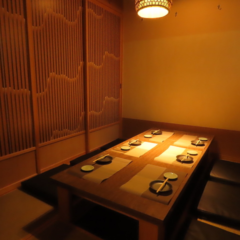 温かな照明が灯る落ち着いた大人の和空間は、日々の疲れを癒す至福の個室空間です。ご家族、ご友人とのお食事や大事な会合、接待などにも最適な空間となっております。