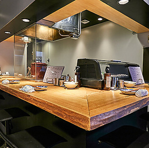 お一人様はもちろん、デートにもおすすめのカウンター席です。目の前で調理する職人のライブ感を楽しみながら、出来立ての料理を味わっていただけます◎