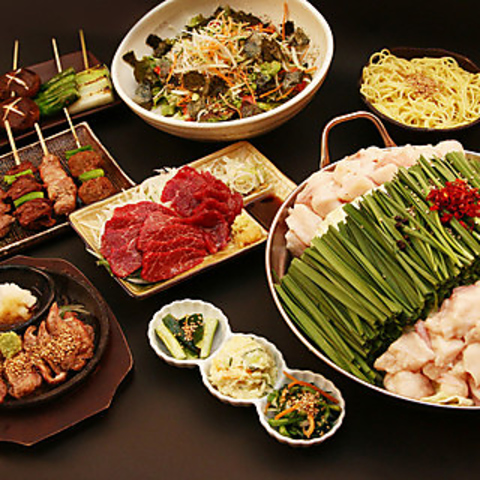 あれこれ迷ってしまうお客様には「特製しおもつ鍋&上州豚コース」がおすすめです♪季節の前菜、チョレギサラダ、自慢のやきとん、とろける馬刺しなど、当店の人気メニューが勢揃い。炭火で炙ったハラミの鉄板焼きや、メインの絶品もつ鍋もお楽しみいただけます。2時間の飲み放題が付いてジャスト5000円(税込)でご提供します!