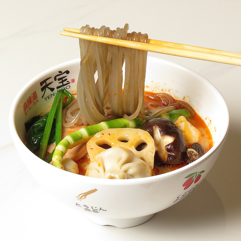 麻辣湯の主役は、良質なさつまいもから作られた春雨。細めのタイプはつるりと軽やかに、太めのタイプはもちもちとした食感でしっかりとした食べ応えを楽しめます。さらに春雨だけでなく、中華麺や刀削麺もご用意し、お好みに合わせて自由にスタイルを選べます。