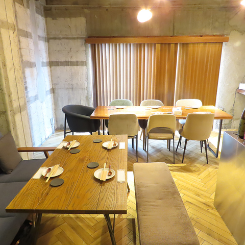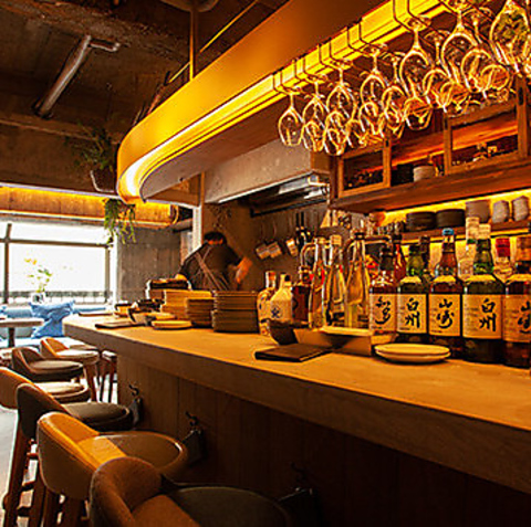 【多彩なシーンに対応】長屋スタイルのスタイリッシュな空間を演出した当店。お一人様でも気軽に立ち寄れるカウンター席と、少人数のグループでのお食事に最適なテーブル席をご用意。全21席の広々とした空間で、様々なシーンにご利用いただけます。