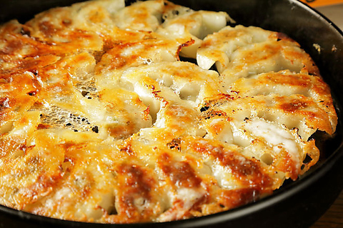 餡と皮にこだわり、一つ一つ丁寧に握ったジューシーな餃子をアツアツの鉄鍋でパリパリに仕上げました!