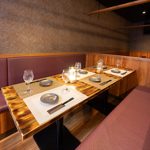 デートやコンパ等にもオススメな個室ソファー席も完備!少人数~団体様のお上がり席も完備し、宴会をお楽しみ頂けます◎周囲を気にせずお客様だけのひと時をお過ごしください!間接照明の数々がお客様の宴を彩ります♪宴会用貸切席のお問い合わせやご予約もお気軽にご相談下さいませ。
