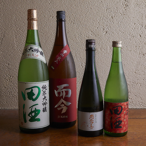 田酒・作・獺祭・黒龍など定番から季節限定まで幅広く。料理との相性も抜群で、煮込みや刺身を引き立てます
