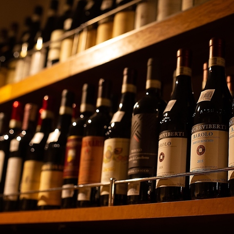 特注ワインセラーにてボトルワインを多彩にご用意。最高級ボルドーワインの5大シャトーも全てをご用意。