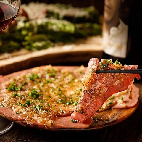 低温でじっくり調理したタンに特製玉ねぎソースをかけました