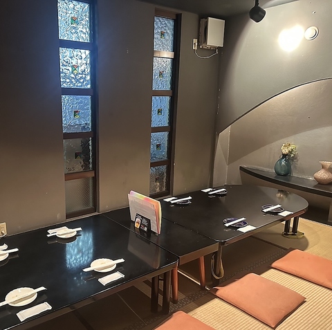 仕切りを外してお席を繋げれば、大人数でも個室でご案内可能です!照明のほんのり落ち着いた明るさで、周囲を気にせずワイワイ楽しめる空間!お皿やお箸が丁寧にセットされていて、さぁこれから宴会のスタート!とワクワク感が高まります!会社の宴会や友人同士の飲み会にもピッタリで、気軽にくつろげる居心地の良さも◎♪