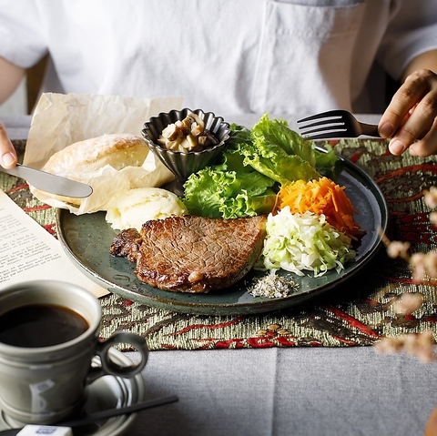 ランチプレートは3種類!丹波赤鶏ステーキプレート(税込み2,200円)能登豚肩ロースステーキプレート(税込み2,200円)黒毛和牛ステーキプレート(税込み3,900円)セットのデザートとドリンクもお楽しみください!