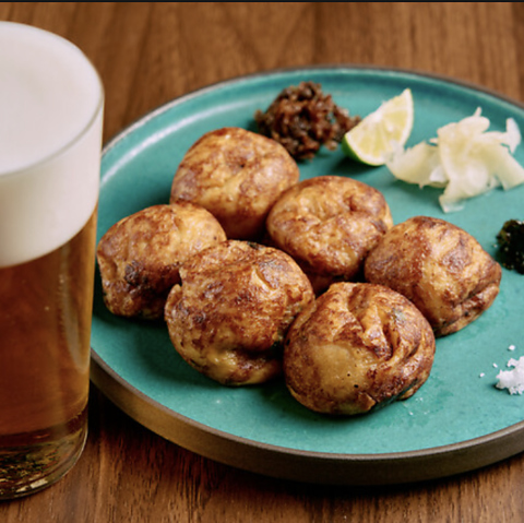 豊洲市場直送の国産の蛸を使用しております。全て店内で一つ一つ大ぶりにカットし、和食的アプローチの調理法を独自に編み出し蛸本来の旨味を閉じ込めるように丁寧に焼いております。今までにない極上のたこ焼きでございます。追加オーダーは、1個から承ります。焼き上がりにお時間を頂戴する時がございます。