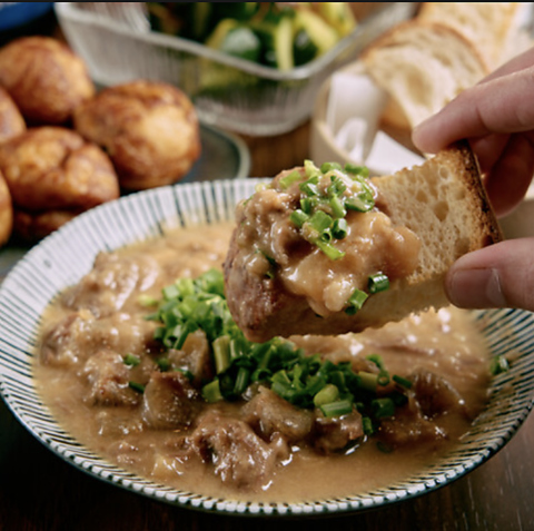バケット(4切)+300円国産牛すじ、アキレス腱とコンニャクを白味噌とかつお節と昆布出汁の一番出汁で美味しく煮込みました。