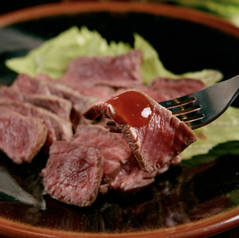 国産牛内もも肉の更に「しんしん」という完全赤身肉の部位をレア目の焼き加減でご提供。そのままでも美味しいですが、日のもと独自で考案した塩梅出汁で召し上がっていただきます。牛肉の赤身肉を存分にお楽しみ下さい。(60g単位で増やせます。お気軽にお申し付けください。)