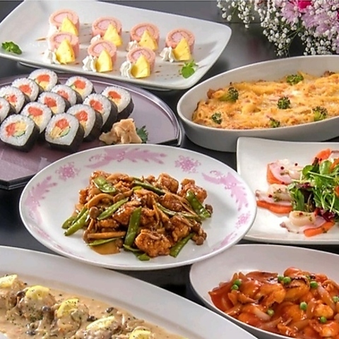 120分飲み放題付コースは和洋中の料理が堪能できてで楽しさアップ!ワイワイ賑やかな飲み会にぴったりです