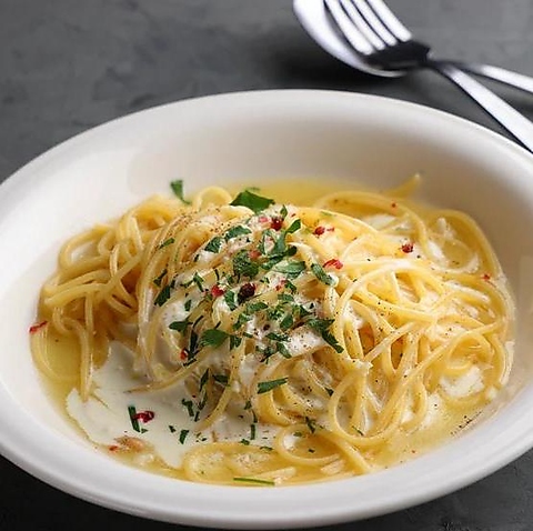 ペペロンチーノをベースに、さっぱりとしたサワークリームで仕上げた『レモンパスタ』です。クリームですが重くなく、レモンのさわやかな酸味と香りが楽しめます。