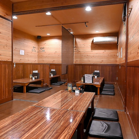 長年愛され続けてきた歴史を感じる、温もりのある店内。木を基調とした落ち着いた空間は、気取らず過ごせる居心地の良さが魅力です。仕事帰りの一杯から仲間との宴会まで、肩肘張らずに楽しめる雰囲気。初めての方でも入りやすく、つい長居したくなる空間づくりを大切にしています。