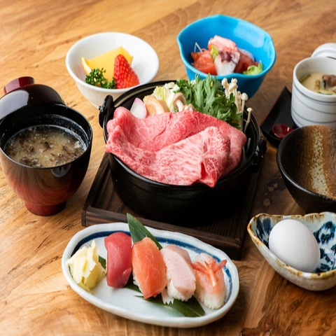 すき焼きと鮨という、日本の二大美食を一度にお楽しみいただけるのが当店の大きな魅力です。厳選和牛のすき焼き、季節の握り鮨、新鮮なお造り、季節の小鉢をバランス良くご提供します。お酒にも合うように工夫された会席コースは、ご接待やお祝い事など特別な日のお食事に最適です。一品一品に心を込めた最高の組み合わせをご堪能ください◎