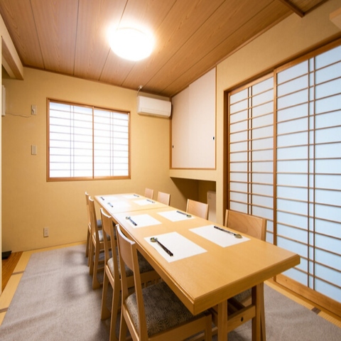 和の落ち着きに満ちた個室で、ゆったりとお食事をお楽しみいただけます。障子や木製のテーブルが温かい雰囲気を醸し出し接待やお祝い事、ご家族での会食など、プライベートなシーンでのご利用に最適です◎周りを気にせず、心ゆくまで上質な料理と会話をご堪能いただける空間です。最大で15名様までご利用可能です♪