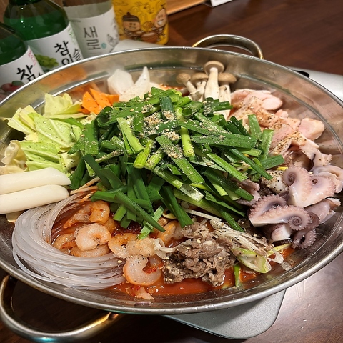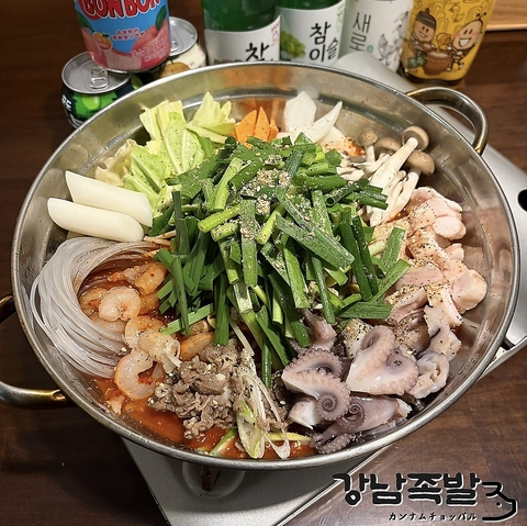 ナッコプセとは、韓国・釜山発祥の「テナガダコ」「ホルモン」「エビ」の頭文字を取った、これら3つの食材が入った辛い鍋料理です。コチュジャンベースの甘辛いタレで炒め煮にする、プリプリした食感と濃厚な旨味が特徴のスタミナ料理で、ご飯が進むため、最後に「ポックム(炒めご飯)」にして食べるのも定番です。