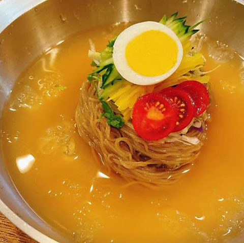 チョッパルとは、豚足を醤油ベースのタレでじっくり煮込んだ韓国料理です。豚肉特有の臭みがなく、プリプリとした皮の部分と、歯ごたえある肉がクセになる!コラーゲンやゼラチン成分が豊富なため、若い女性にも話題のおすすめメニューです♪冷麺や辛く味付けしたブルチョッパルとのお得なセットもご用意しております◎