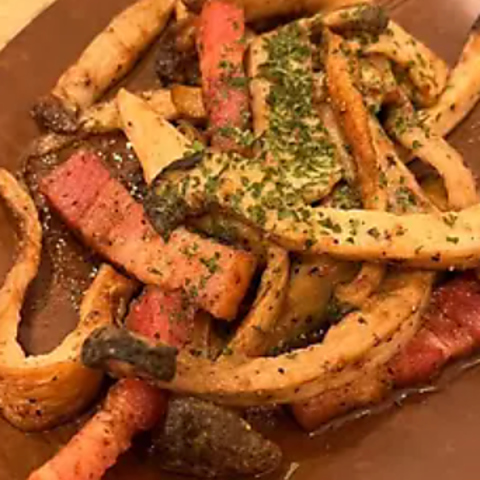 アーサーの風味×クリーミーなカルボナーラの絶妙なハーモニー♪一口食べればやみつきに。濃厚なソースとアーサーの爽やかな香りが、より贅沢な味わいをご堪能いただけます。ワインにもとっても合うので、食事としてもおつまみとしても楽しめる万能メニュー◎ここでしか味わえない特別な味わいをぜひお楽しみください!
