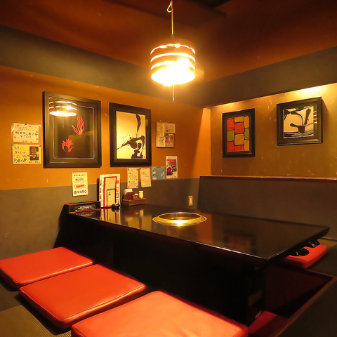 お席は足を伸ばしてゆっくり寛げる掘りごたつ席と、カジュアルに使えるテーブル席がございます。掘りごたつ席は4名席が5卓、6名席が6卓、テーブル席は4名席が2卓、6名席が2卓と、お子様連れからご宴会まで幅広い人数に対応可能です。美味しい焼肉と自家製ドリンクを囲んで、楽しい時間をお過ごしください◎