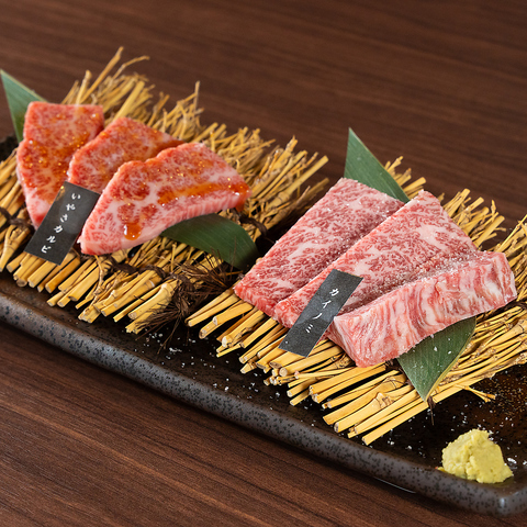 人気メニューの「上ロース」「上カルビ」「ハラミ」「赤身ロース」「いやさカルビ」の5種類を少しづつ堪能できる一皿となっております!上質なお肉を一度に楽しめる贅沢さと、部位ごとの食感や旨みサシの違いをお楽しみください◎