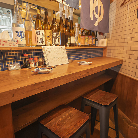 木目調で暖かみのあるカウンター席をご用意◎調理の様子を眺めながら、ゆったりと料理をお楽しみいただけます。落ち着いた雰囲気ながらもカジュアルに使える大衆酒場なので、お一人様でのサク飲みはもちろん、大切な方とのデートでのご利用にも最適です♪新鮮な旬魚とこだわりの日本酒を心ゆくまでご堪能ください。