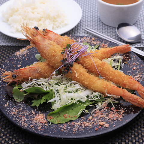 使用するエビは国産をはじめ世界各地から厳選。旨みの濃い赤エビや希少な国産生エビなど、品種ごとに異なる味わいを楽しめます。自家製のえび塩とタルタルソースがそのおいしさを引き立て、エビフライの新しい魅力を提案。4種盛り(2,270円(税込))で食べ比べるのもおすすめです。