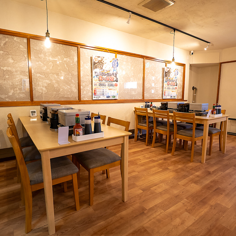 6名様掛けのテーブル席が2つあるので、ゆったりとした空間で会話を楽しむことができます!アツアツの料理がテーブルを彩り、笑顔あふれる楽しい時間を演出します☆