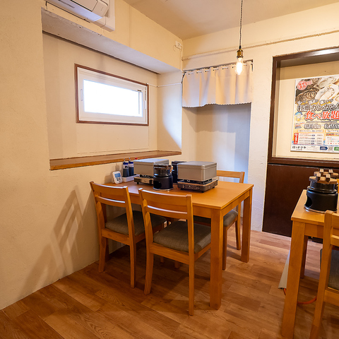 6名様掛けのテーブル席が2つあるので、ゆったりとした空間で会話を楽しむことができます!アツアツの料理がテーブルを彩り、笑顔あふれる楽しい時間を演出します☆
