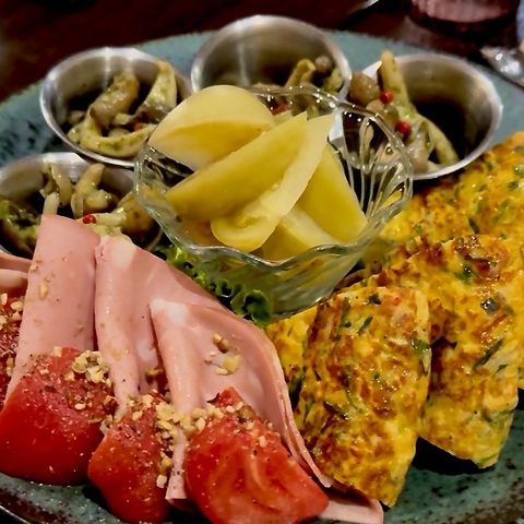 サク飲みやお酒と一緒に何かつまみたい時にピッタリな『前菜盛り合わせ』は、その日のおすすめメニューを盛り合わせてお作りしております。事前にご予約いただいたお客様に合わせて出来立ての『バスクチーズケーキ』をご用意することも可能ですので、お気軽にお電話でお問合せください。