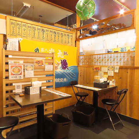 二人掛けや四人掛けのテーブル席を豊富にご用意しております。友人や家族とともに楽しい会話や笑い声を交わしながら、特別なひとときをお過ごしいただける空間を提供しています。明るく温かみのある雰囲気の中で、心地よい食事を楽しみながら、素敵な思い出を作っていただけることでしょう。金沢の地酒などもご用意しております。