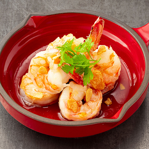 香ばしく焼き上げたぷりぷりの海老に、ガーリックの風味がしっかり絡む人気メニュー。ジュワッと広がる旨みと香りが食欲を刺激し、お酒との相性◎
