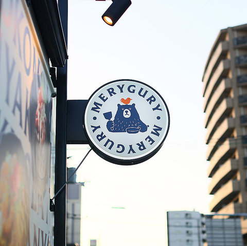 可愛い大きなロゴが目印です。おせっかいで気まぐれな小鳥のメリー(MERY)と、温厚でやさしい熊のグリー(GURY)。デコボコなふたりがお届けする料理店というコンセプトです。皆様に喜んでいただけるよう、見た目にも味にもしっかりこだわったお料理をたくさんご用意しております。