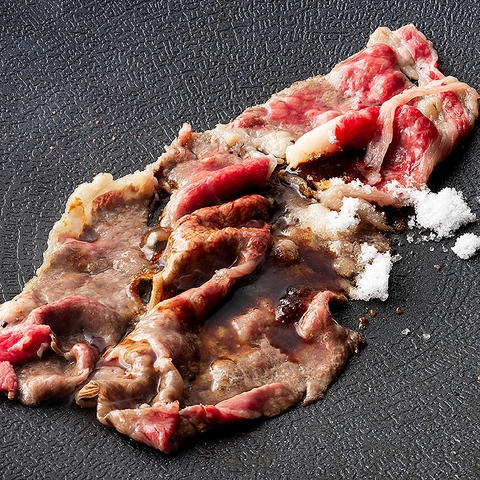 厳選した和牛を目の前で焼き上げる贅沢な一品。ライブ感を楽しんだあとに、溶き卵にたっぷり浸して食べると、お口の中が幸せで満たされること間違いなし!