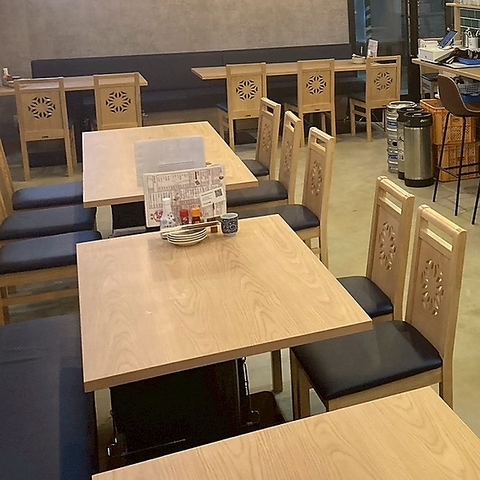 【使い勝手の良いテーブル席は楽しい飲み会シーンに◎】明るく賑やかな空間の店内には、4名様テーブル席と6名様テーブルをそれぞれご用意しております。席数もしっかりございますのでお気軽にご来店ください。友人、カップル、会社宴会などグループでのご利用に最適で、幅広いシーンに便利です。